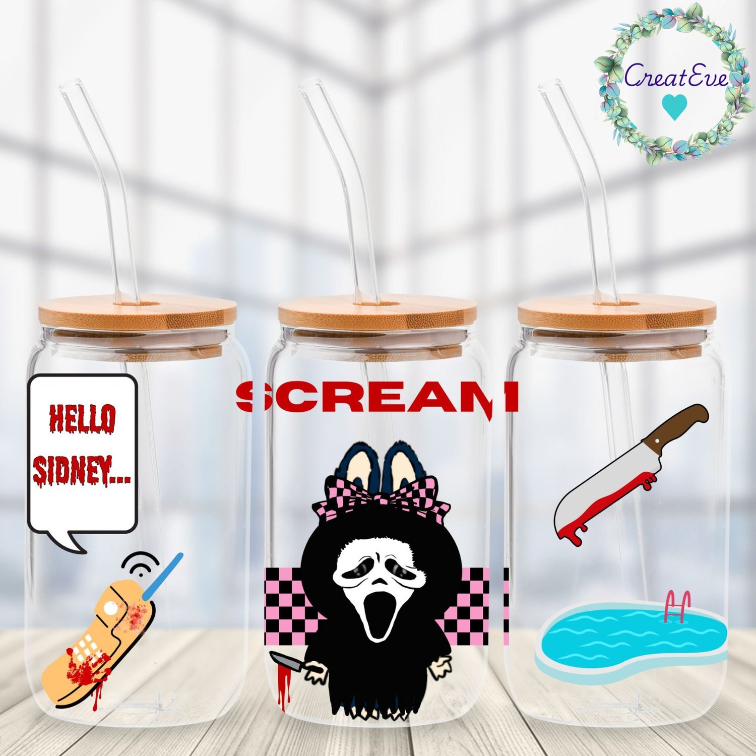 Hand Drawn Ghost Face Labubu 16oz Glass Can Wrap