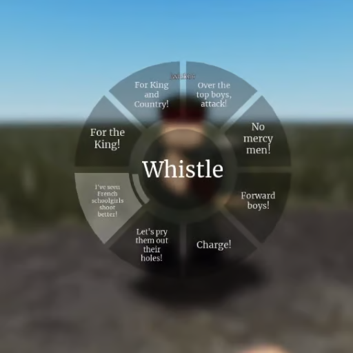 This Trench Whistle and Callout system was designed for my WW1 community, it can be used for whatever group/genre you need. I have also free released the audios used in this system, and they will be attached to the product file (Associated Chants & War Cries) along with the file with all the default voicelines the system was made for, for ease of navigation and access to reuploading. (Default Packaged Chants & War Cries). However, you can change them to whatever sounds you wish to change them to.