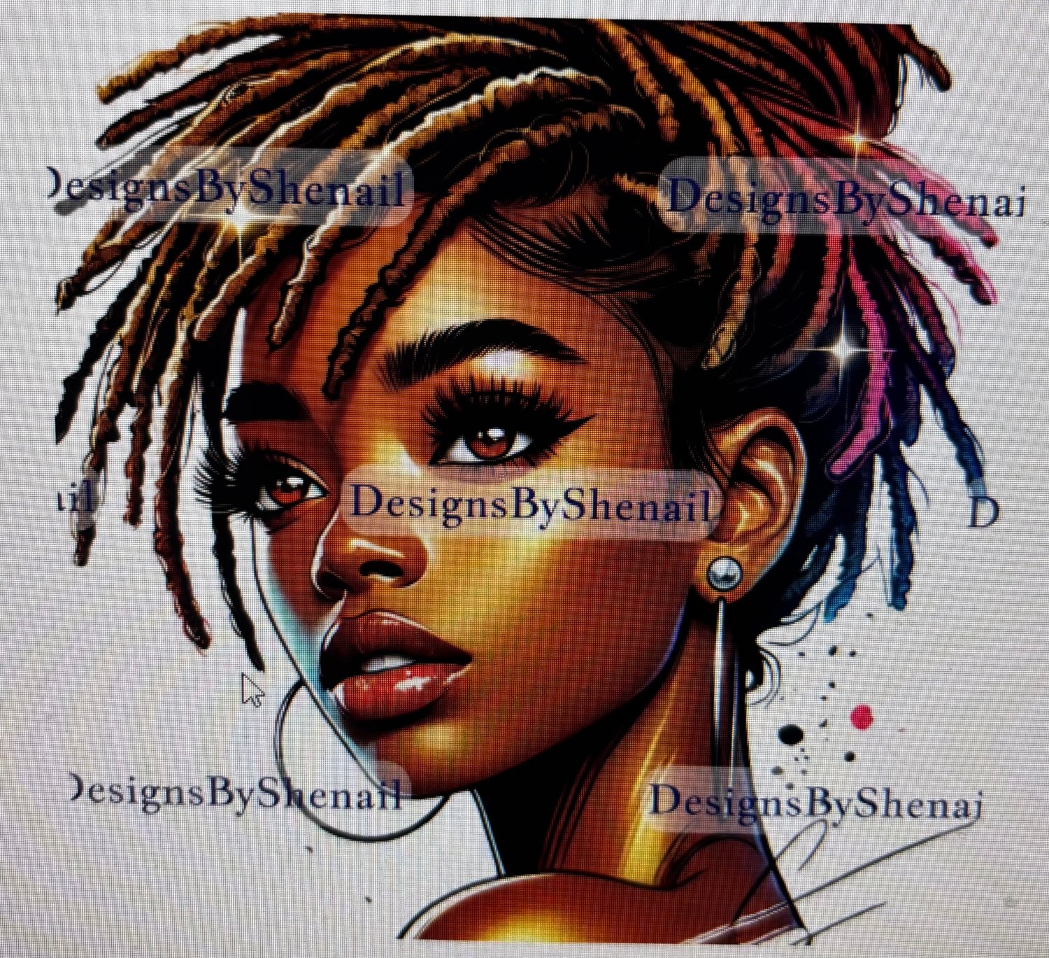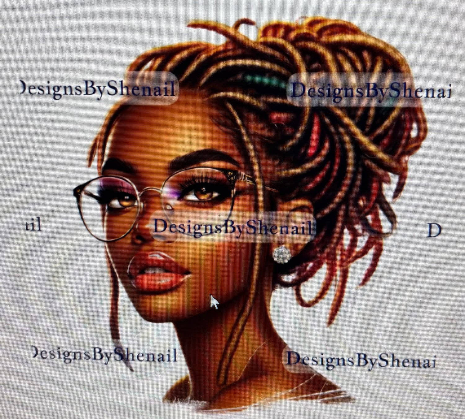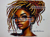 Embrace Afrocentric beauty and bold fashion with this stunning art print by Shenail’s Designs. Featuring a powerful Black woman with multi-colored locs, stylish transparent glasses, and large hoop earrings, this illustration is a celebration of natural hair, cultural pride, and modern Black beauty. Whether displayed in your living room, office, or bedroom, this piece adds a striking and empowering touch to any space.