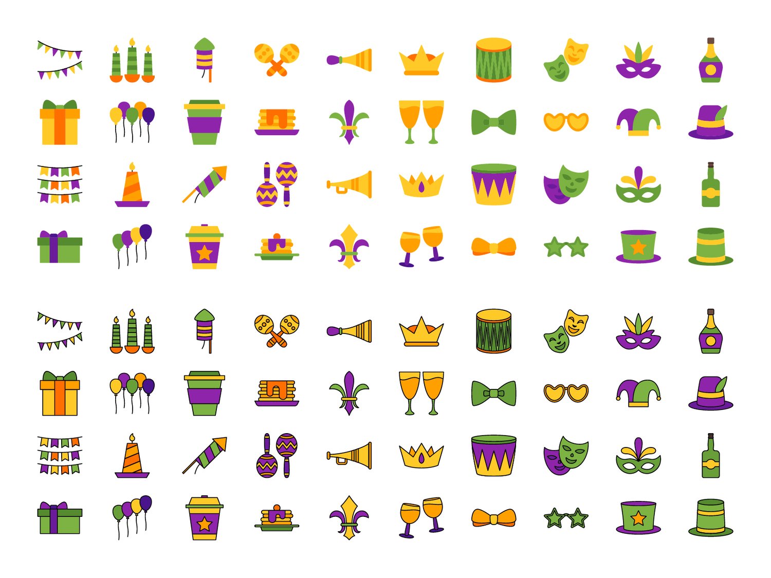 Mardi Gras Set Icons