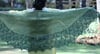 27.5” 70 cm deep at center x 90” 229 cm wide at the ends after wet blocking.