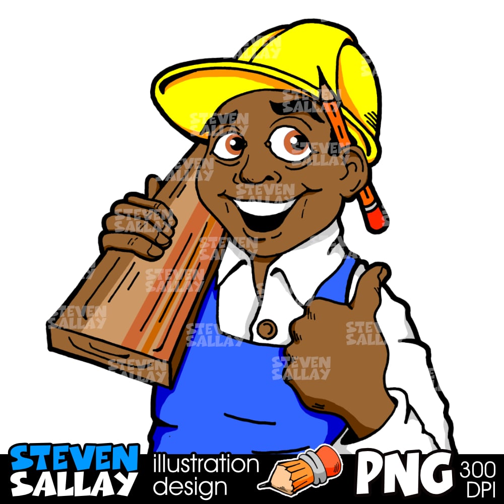 Cartoon Black Carpenter Clipart: Funny Woodworker Illustration | Construction Trade | Digital Download PNG