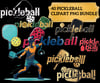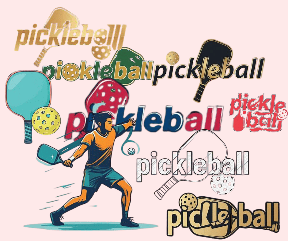 - Players, paddles, balls, and pickleball text designs