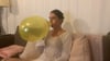Stoic Nenna blows this balloon as if it's nothing... until a loud pops suddenly startles her