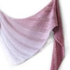 Small size (pink shawl) shown in Dingo Dyeworks Fair Dinkum (100% Merino Wool; 437 yards/400 metres per 100 grams) in the Jolly Swagman gradient colourway (8 gradient mini skeins, 12.5 grams each).