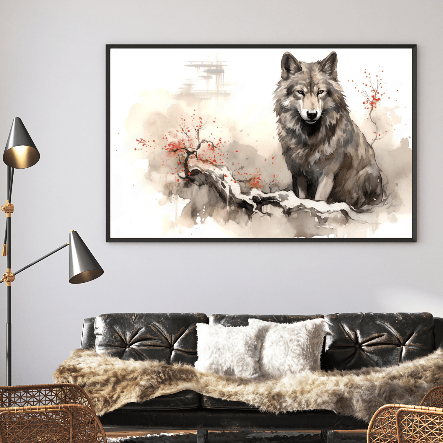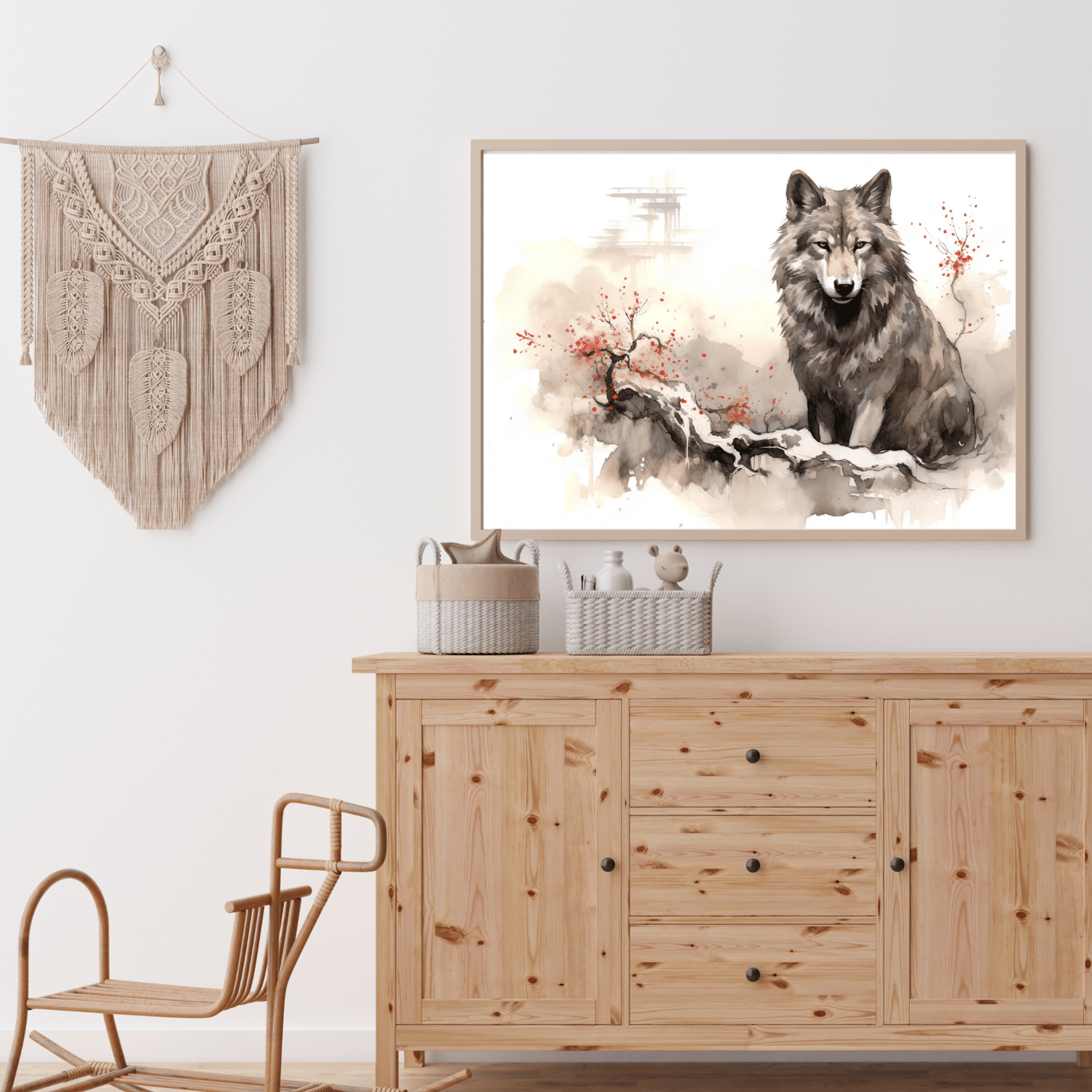 Add a touch of elegance and sophistication to your home with this Oriental Wolf and Cherry Blossom Watercolor Printable Art. This beautiful piece is painted in watercolours in a traditional oriental style, featuring a striking image of a wolf surrounded by delicate cherry blossoms. The high-quality, high-resolution image is easily downloadable and printable, making it a convenient and stylish addition to any room in your home. Perfect for those who appreciate art and nature, this printable art is sure to enhance your home decor. Perfect for adding a pop of color and culture to any room,