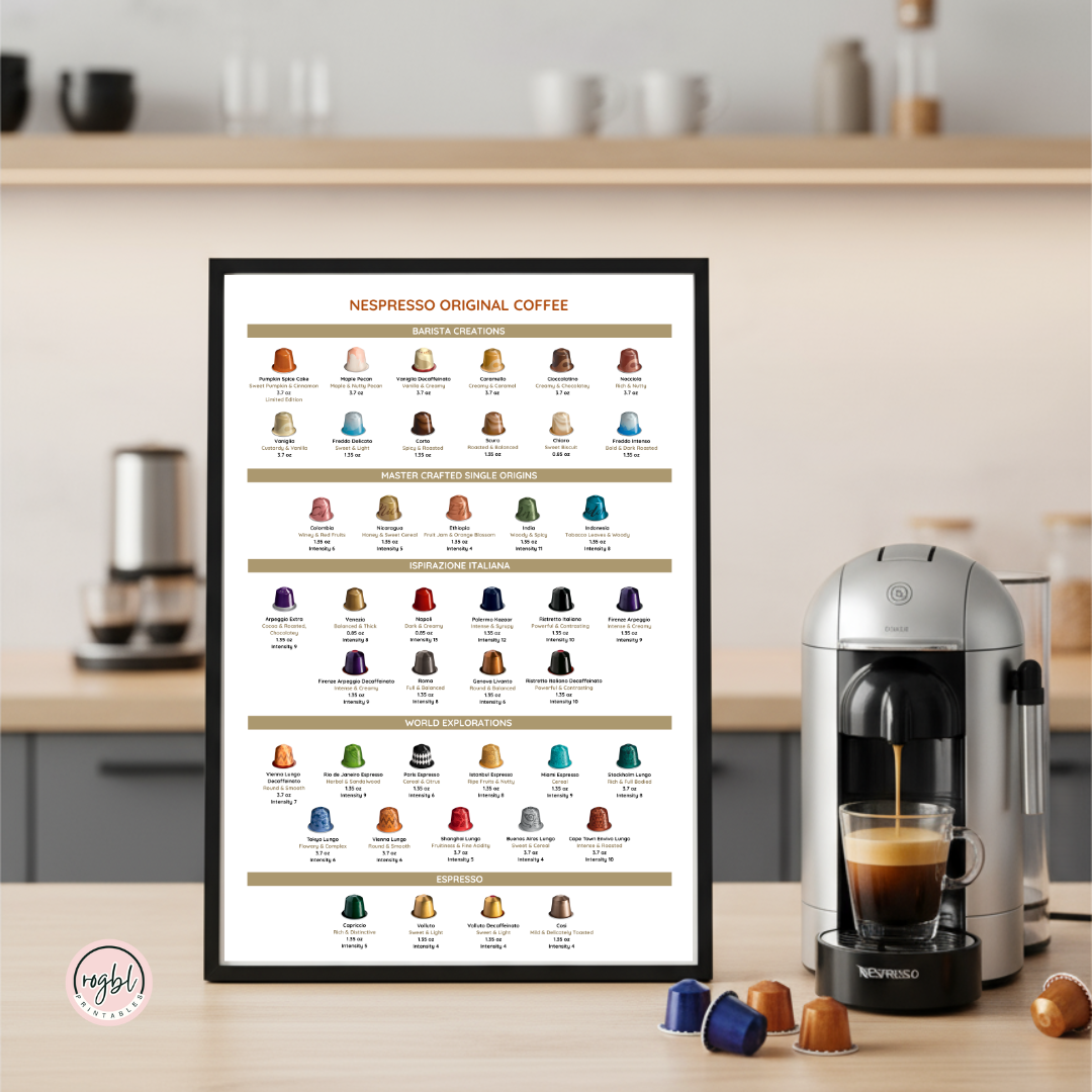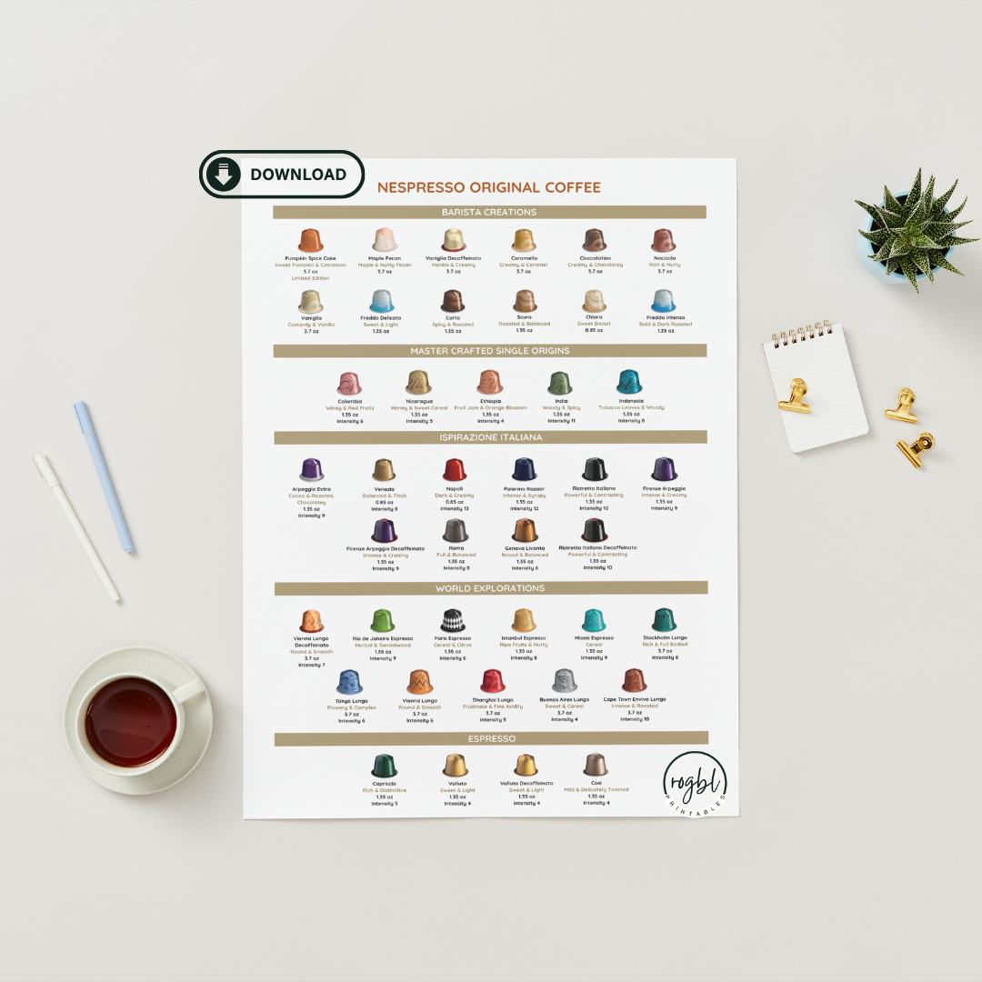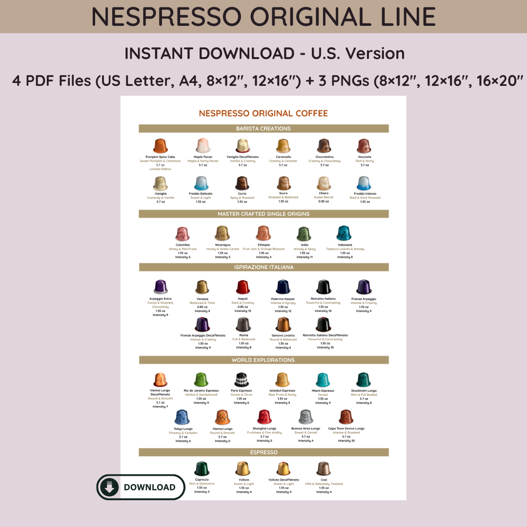 Printable Nespresso Original Coffee Capsule Guide (U.S. Version), Printable Coffee Capsule Menu, Updated November 2025, Digital Download