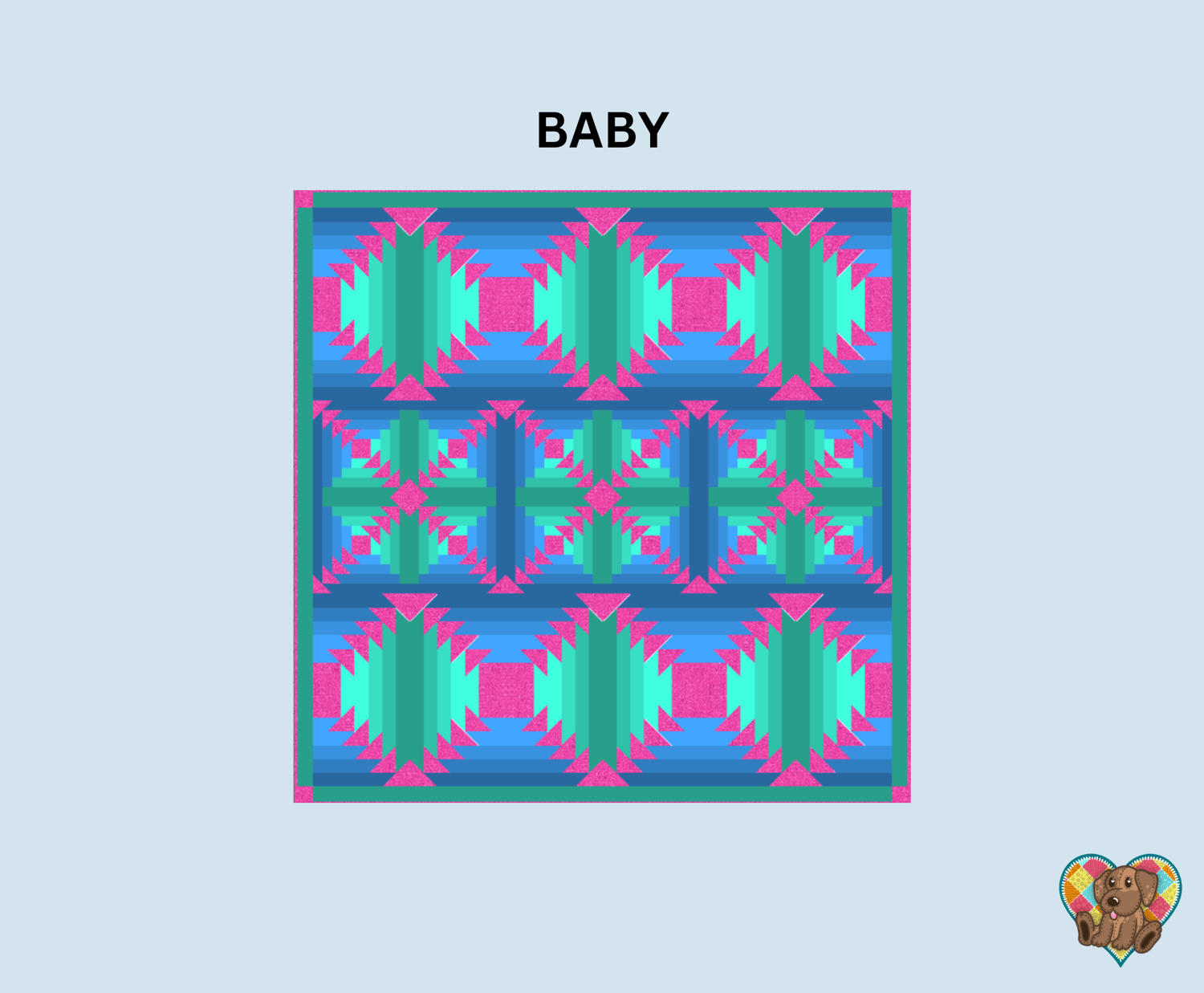*Note: This pattern includes instructions for a baby (40" X 40"), lap (68.5" X 68.5"), twin (73" X 90"), queen (91.5" X 100"), and king (110" X 110") size quilt.* Blocks are traditional pieced blocks.