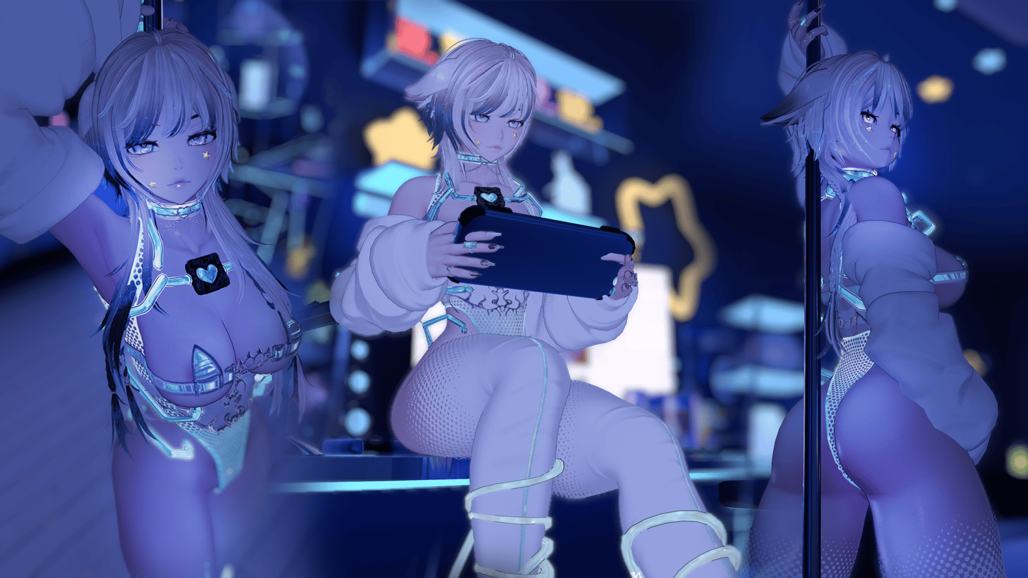 · Clothes: Belt Top, Bodysuit, Cyber Thigh Highs, Leather Sleeves, Shorts, Cat Boots.