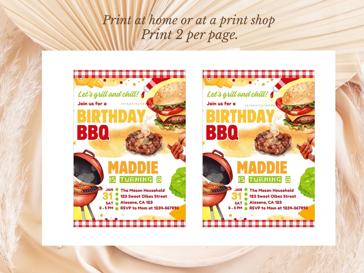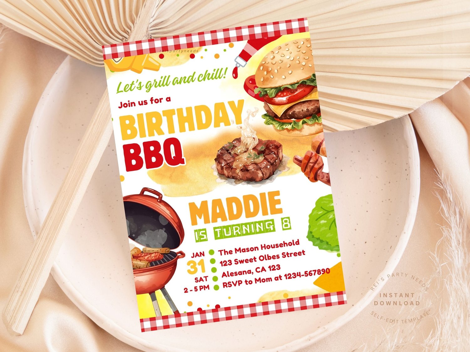 Bbq Birthday Invitation, Steak Night Invitation, Barbeque Birthday Invitation, Editable Burger Invitation, Bbq Birthday Invite, Editable Canva Template