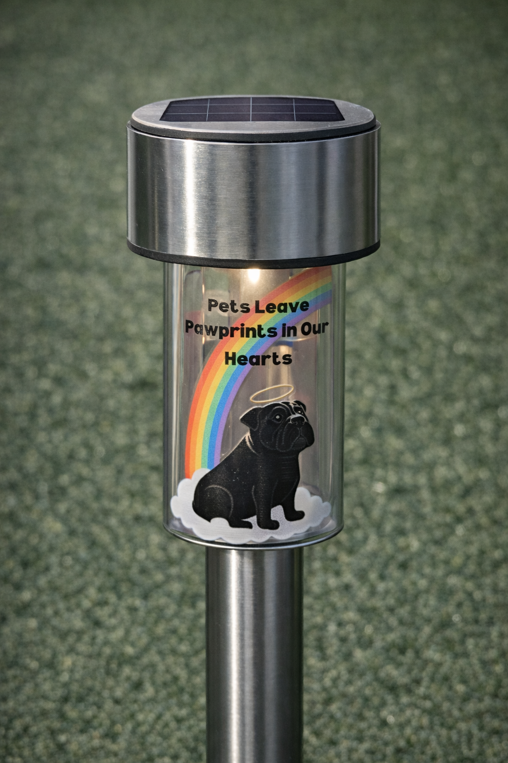 - Package Includes: 1 x "Pawprints in Our Hearts" Solar Memorial Stake