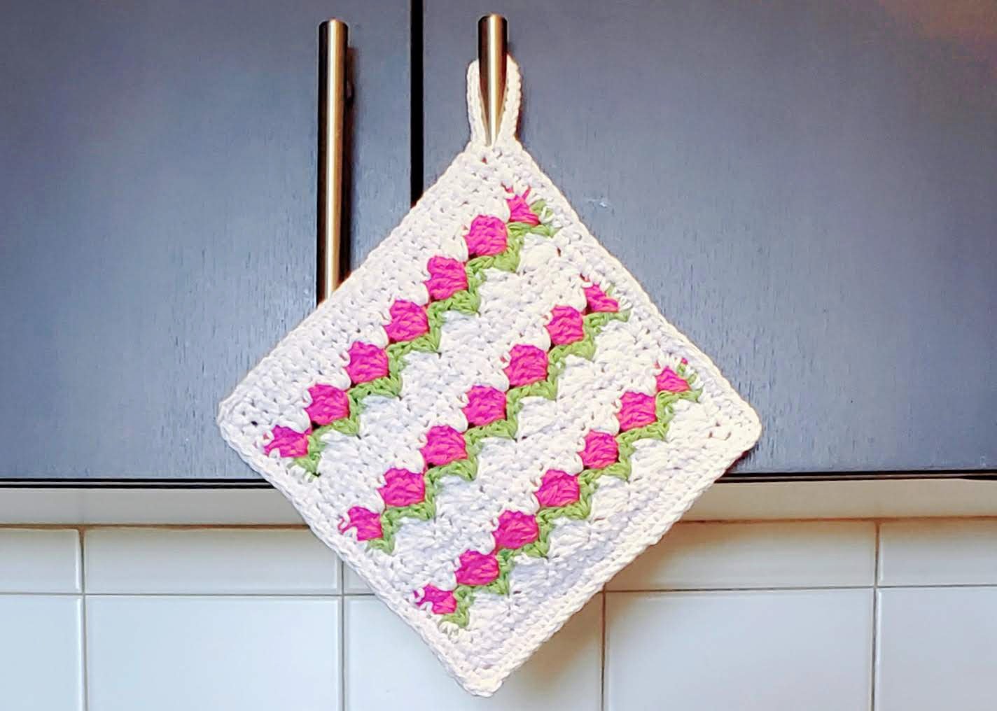 Add springtime fresh and colorful vibes to your kitchen and crochet the pretty tulip stitch dishcloth.