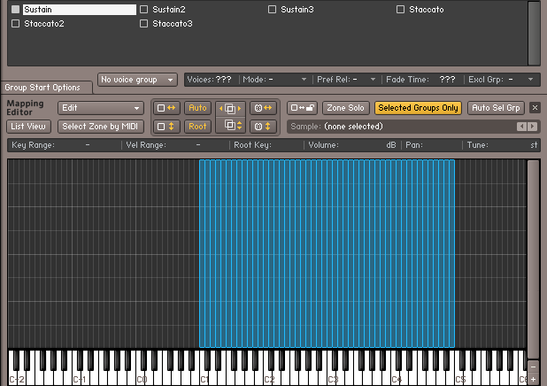 Programación del instrumento: Tiene dos articulaciones asignadas a un keyswitch del teclado; es decir, al presionar una tecla específica, se activará una articulación. La tecla C0 activa el modo staccato o notas cortas, y D0 activa el modo sustain o notas largas. El instrumento cuenta con 3 capas round robin por articulación y un menú con knobs que modulan el cuerpo (graves), el brillo (agudos) y la reverberación.