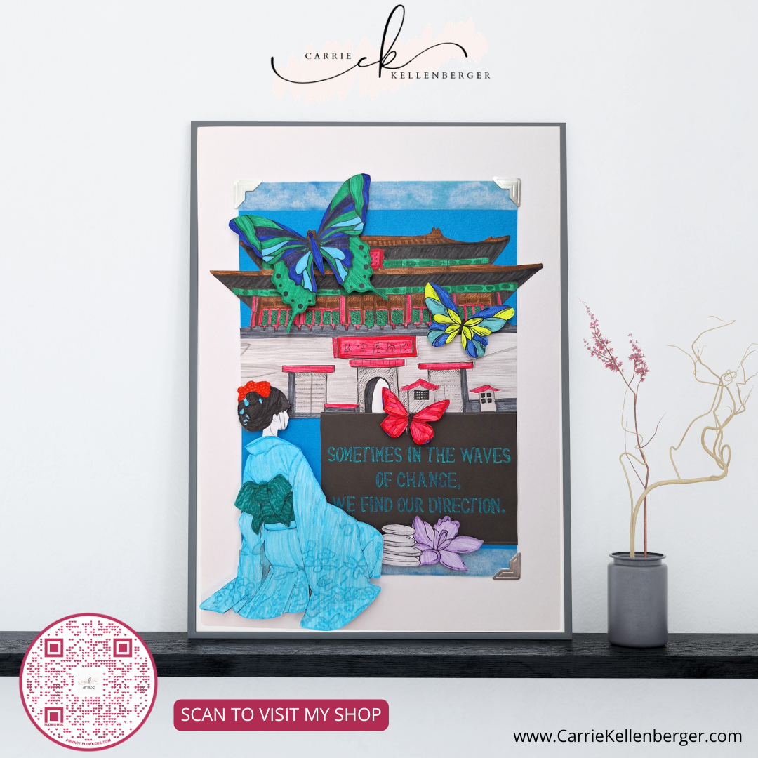 My paper cutting technique adds an extra 3D dimension of beauty and intricacy to each design, making my collages a delightful keepsake. They’re meant to brighten any space: an office cubby, a senior’s bedside, a child’s room, a sunny kitchen, or anywhere your heart desires.
