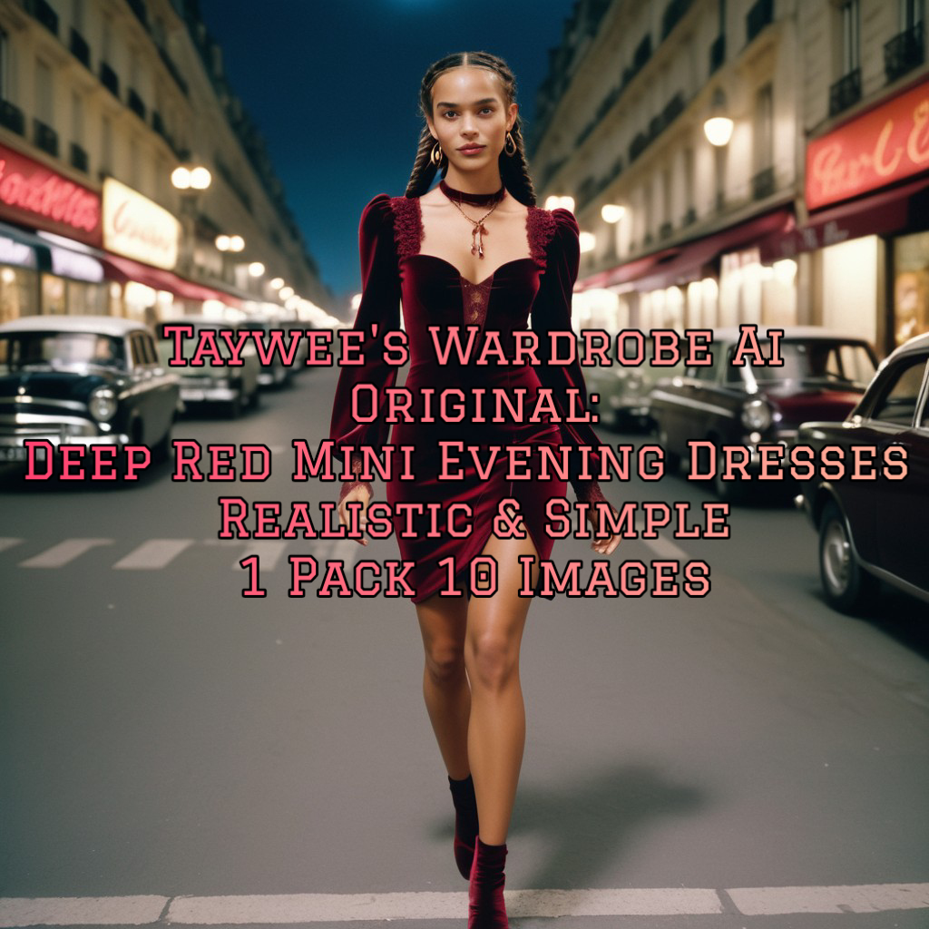 Taywee's Wardrobe Ai. Original: Deep Red Mini Evening Dresses Realistic & Simple. (Digital Files In Raster Format) Click To Buy. Price in USD.