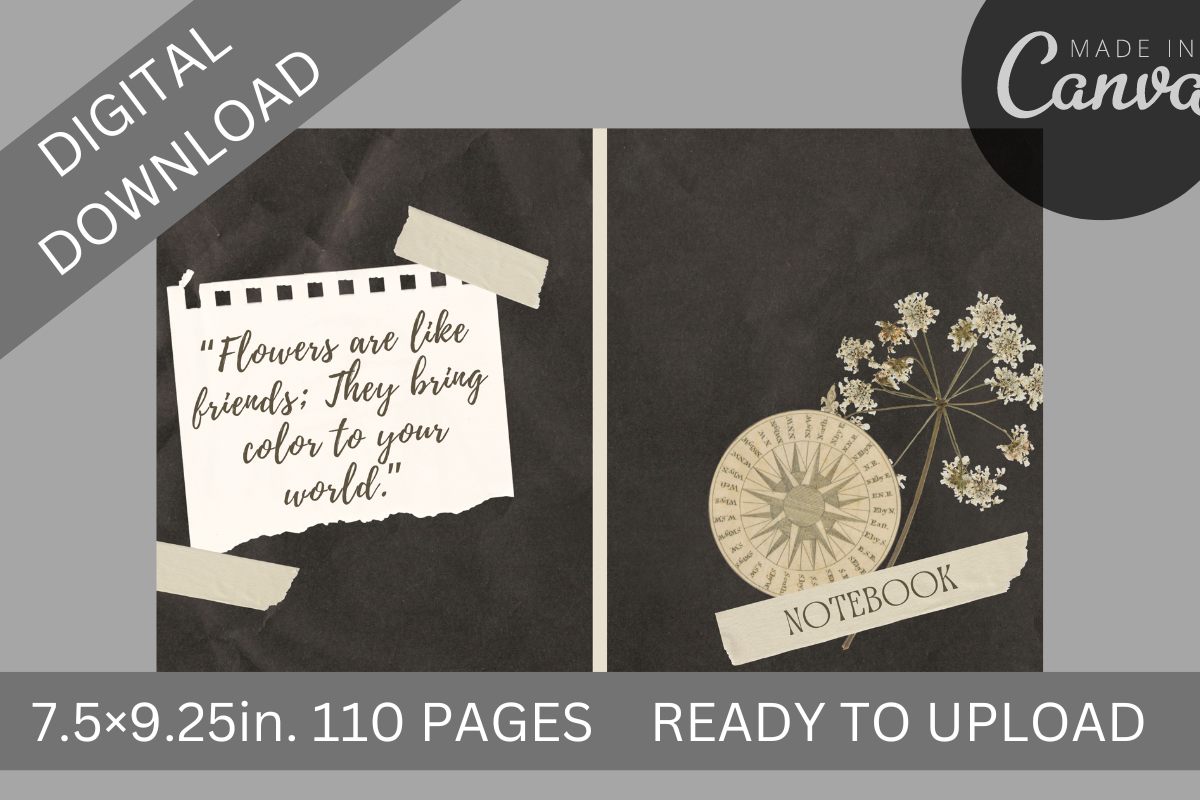FLOWER THEMED KDP LINED PAPER COVER, LOW CONTENT BOOK COVER FOR KDP READY UPLOAD, FLOWER KDP JOURNAL PAPER, FLOWER JOURNAL NOTEBOOK MOCKUPS, KDP CANVA NOTE COVER