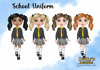 Instant digital download of our Cute School Girl in Grey and Yellow Uniform PNG (36 PNG’s included one)