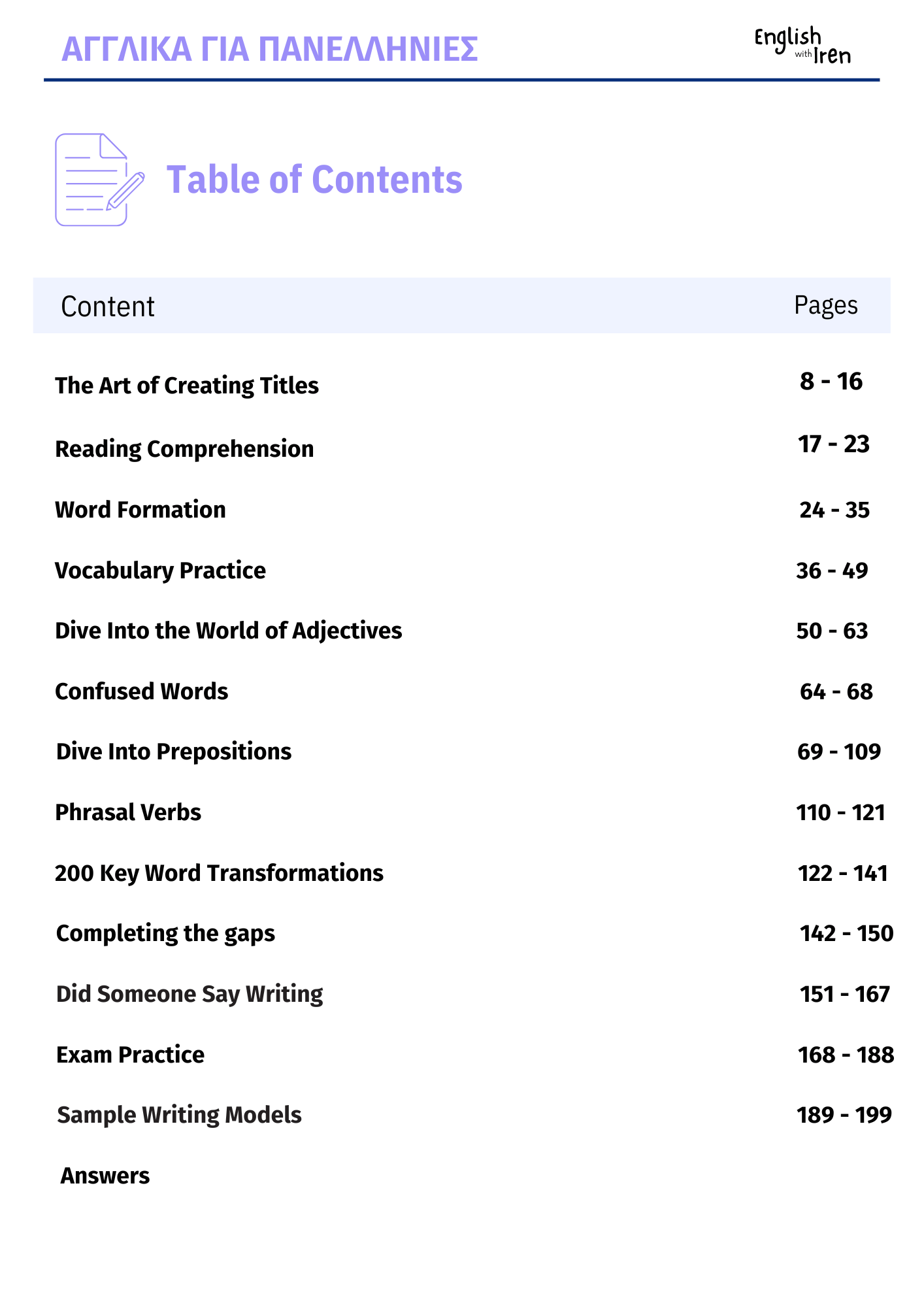 -γλωσσική επίγνωση (vocabulary practice, prepositions, prepositional phrases, phrasal verbs, confused words, key word transformations)