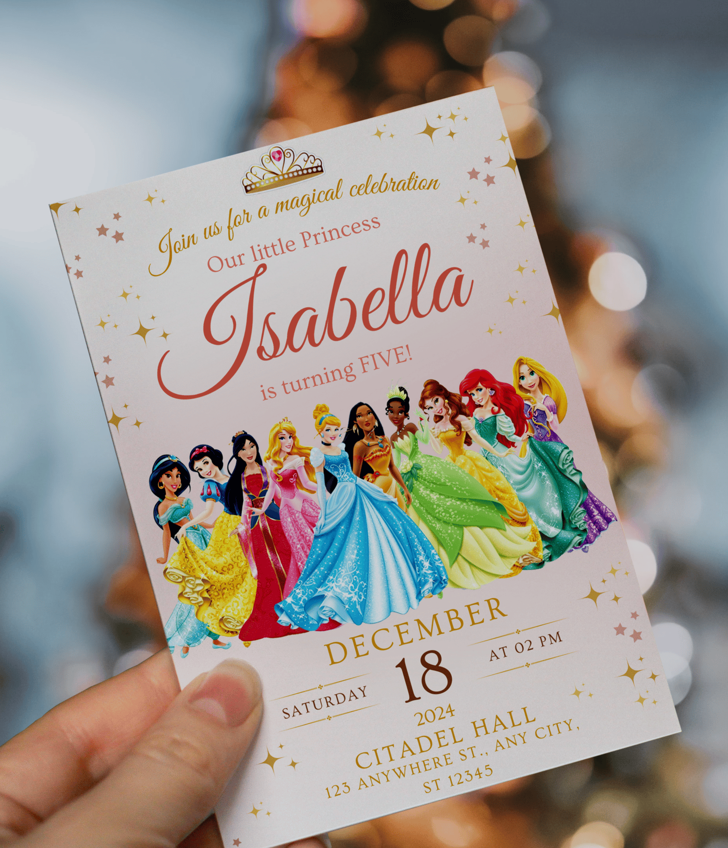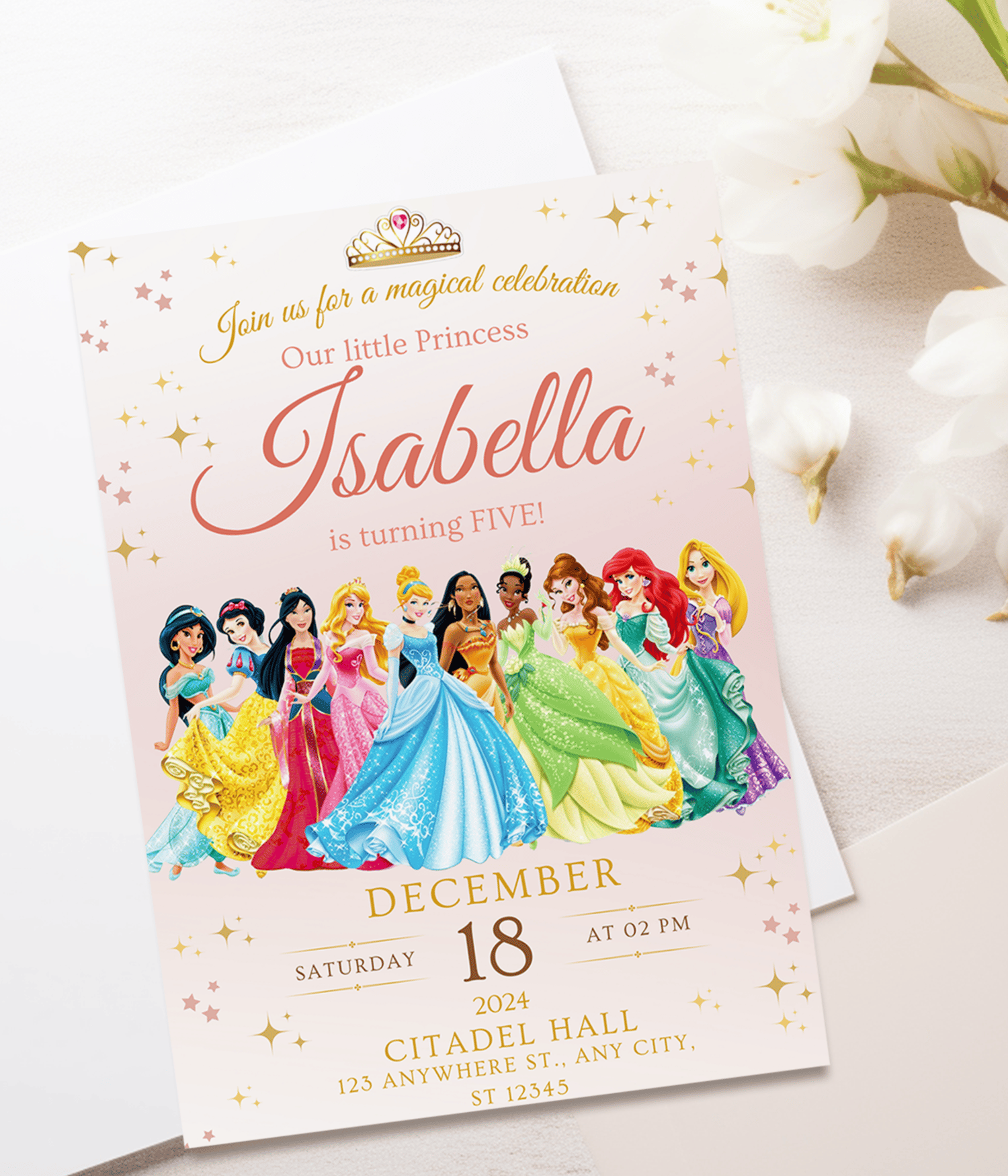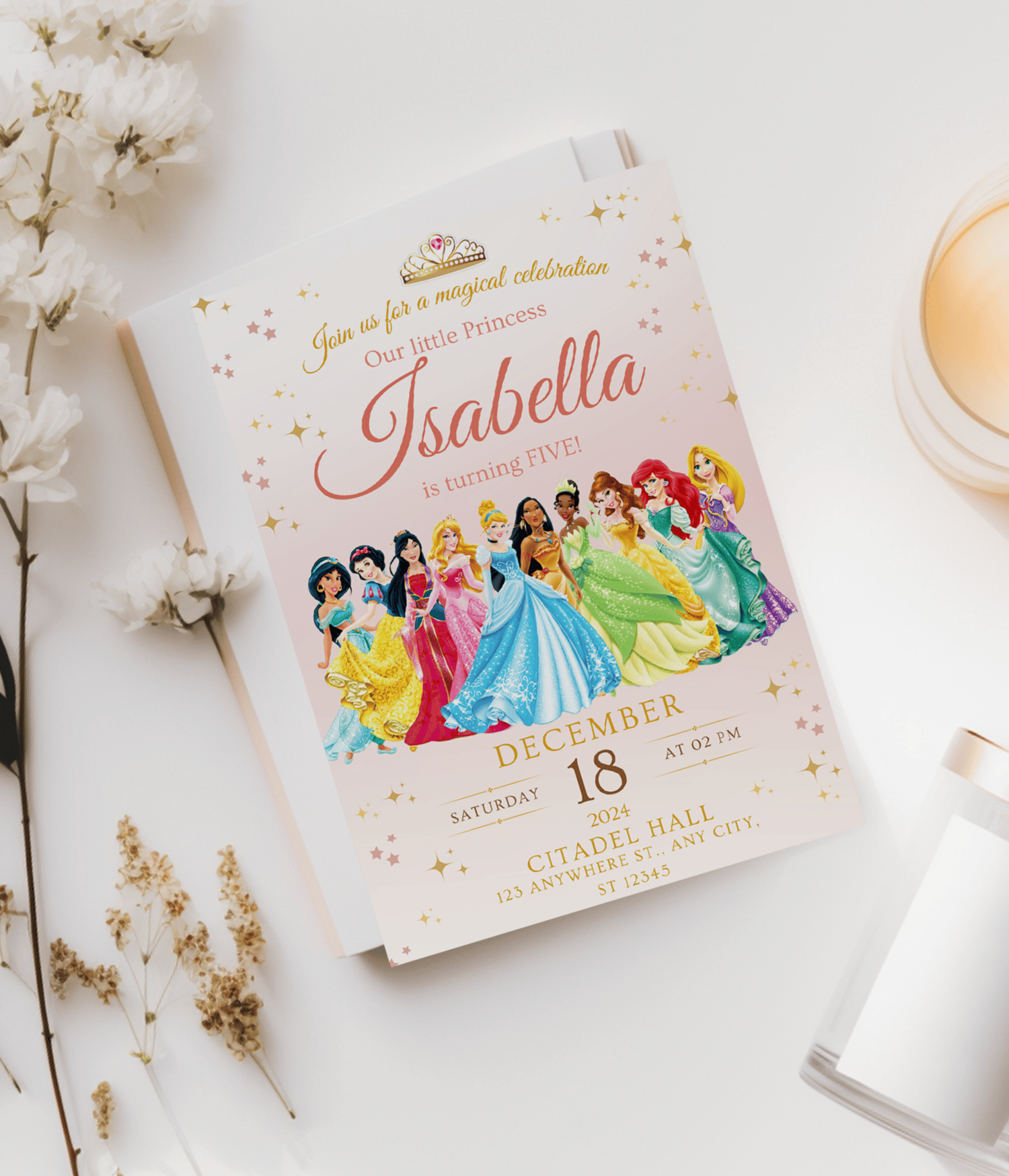 Editable Princess Birthday Canva Template, Princess Birthday Party Invitation