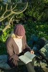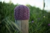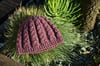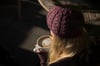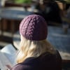 Inspired by the book, play, and musical Spring Awakening, the Wendla Hat pays tribute to the story’s leading female character, Wendla Bergman. She begins her story under strict traditions and tight German braids, but over the course of spring, she learns to loosen her locks and open up with the budding flowers. Knit in a light violet, tweedy yarn, this hat embodies Wendla’s girlhood spent in the German countryside.