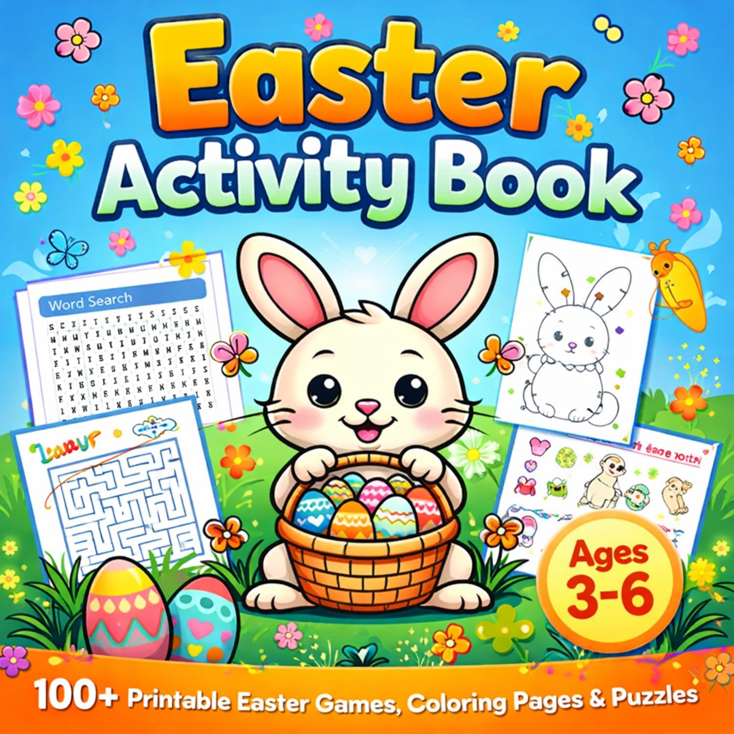 Easter Activity Book for Kids Ages 3–6 | 100+ Printable Easter Games, Coloring Pages, Mazes & Puzzles