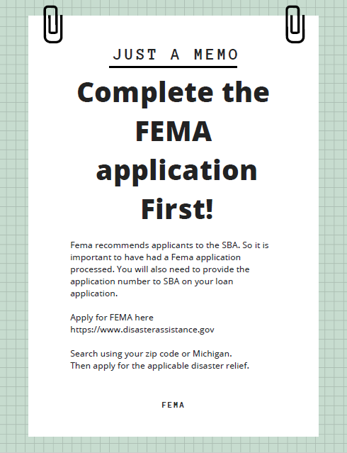 I recently attended a webinar given by the SBA, I'm sure there are many people that experienced loss during this summer's flooding in the Metro Detroit Area.