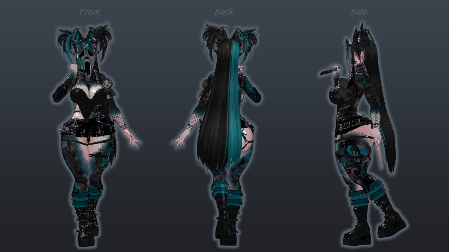 - Gothic Corset, Blood Wrap Top, Coat, Bloody Corset, Heart Top, Barbed Wire Bra, Bra, Pasties, Fishnet, Barbed Wire Panties, Lace Panties, Jeans, Skirt, Latex Pants, Barbed Wire Heels, Rip Heels, Heelless Boots, Ribbon Heels, Inferno Heels, Ruffle Boots, Garter Socks, Pincher Gauges, Head Knife, Hand & Butt Knife, Face Piercings, Mr. PP, Boob and cheek Ghostie, Mask ,Glasses, Harness Knife , Harness, Spike Choker, Cuban Necklace, Blood Chain, Bat Garter, Butt Plug, Knife Gauges & Beaded Cross Necklace (COMMISSION DO NOT REUSE), Arm Wraps, Body Piercings, Rings