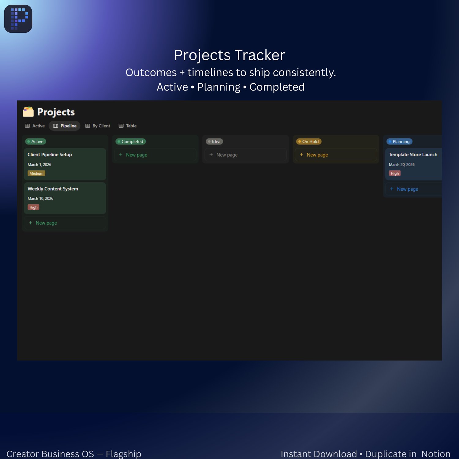 Creator Business OS – Notion Template (Tasks + Content Calendar + Client Pipeline)
