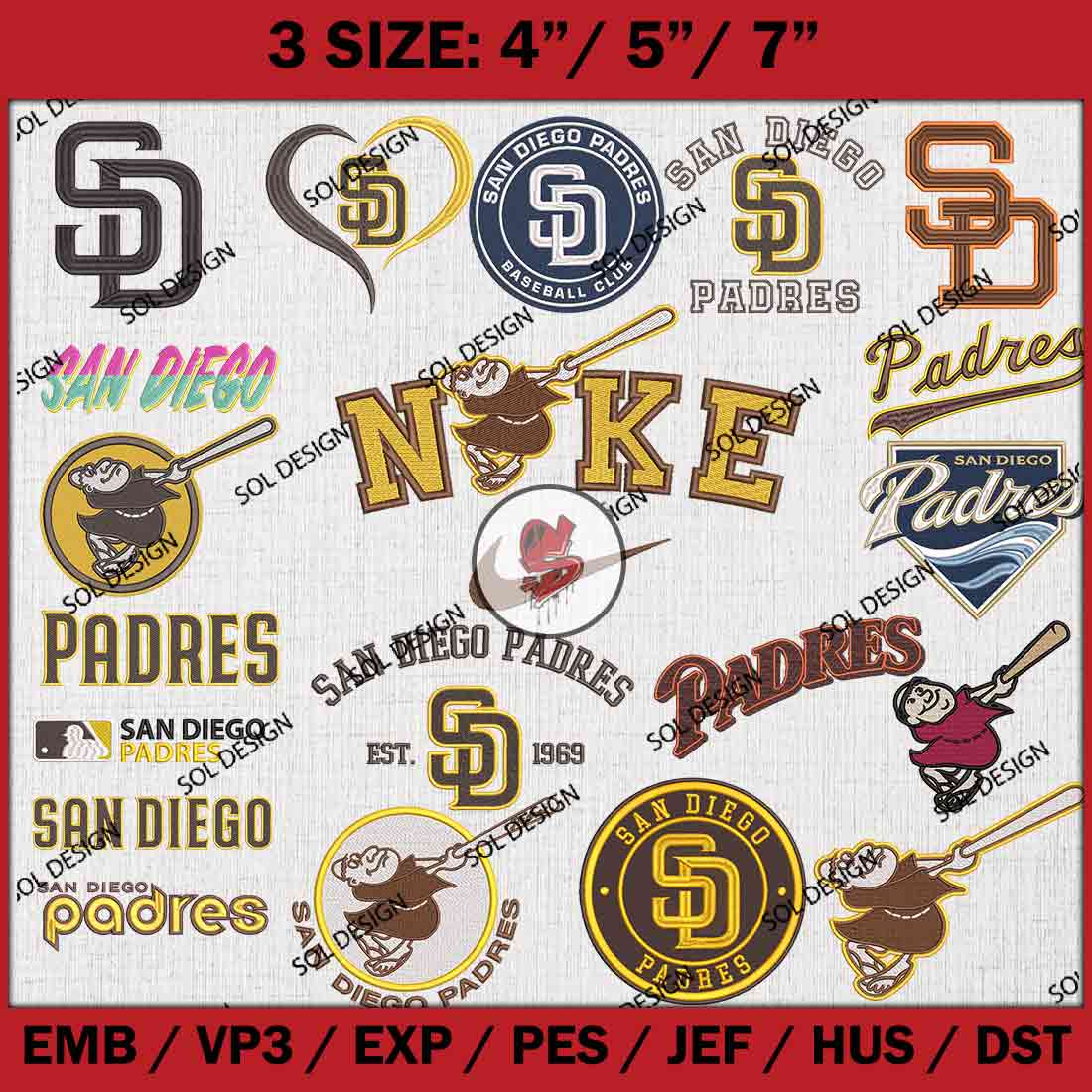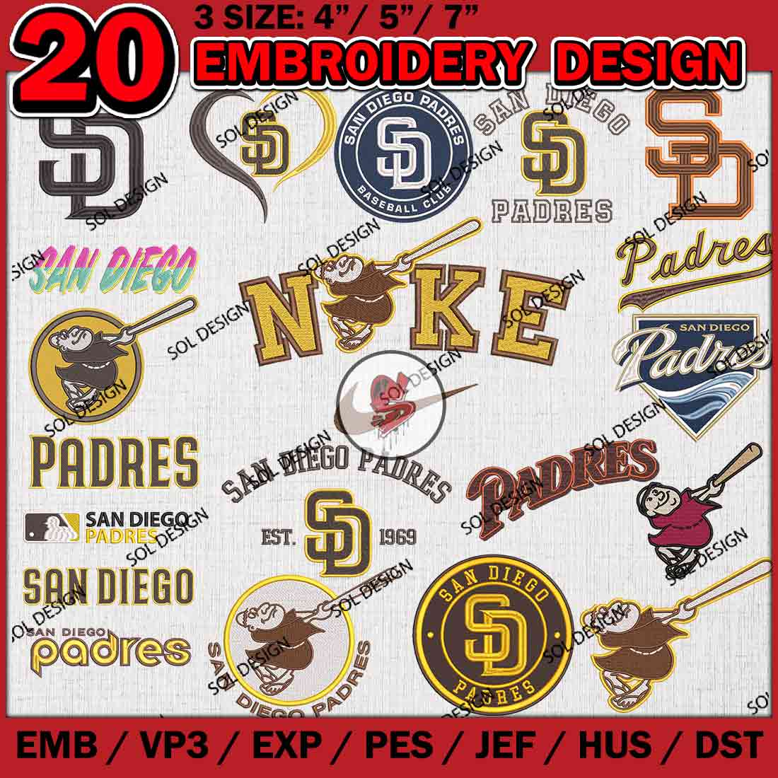 20 San Diego Padres MLB Team Bundle Embroidery Designs, MLB San Diego Padres Embroidery Designs, MLB Padres Machine embroidery Designs Bundle, Baseball Team Bundle, Digital Download