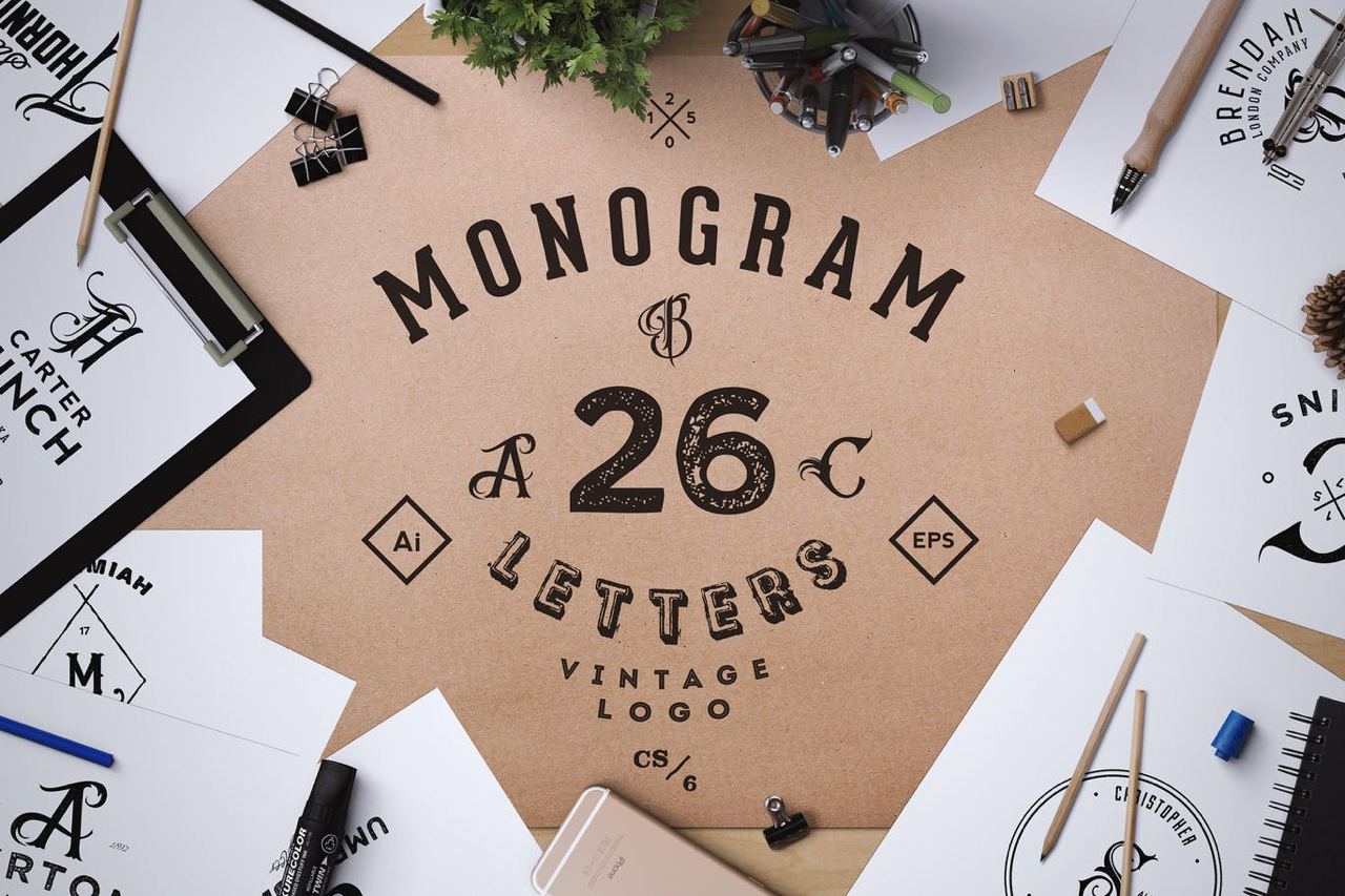 "Monogram. ABC Vintage Logos" it's everything you need (26 handcrafted letters and 26 Name Based Vintage Logos to give you some inspiration and jump-start your creativity) to design a totally awesome, Monogram Name Based Logos.