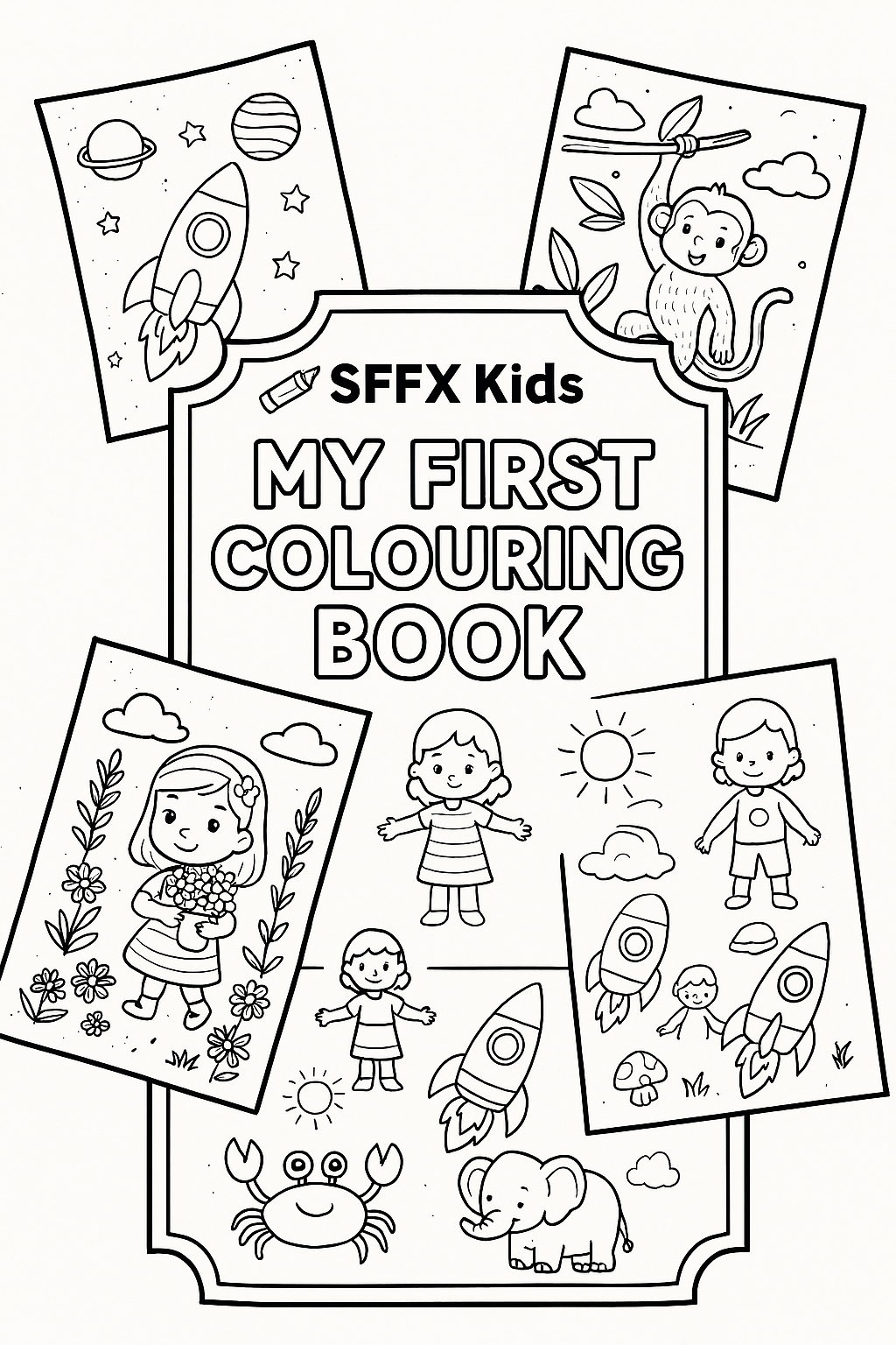 Introduce your little one to the joy of colouring with SFFX Kids: My First Colouring Book—a beautifully designed 30-page A4 printable PDF filled with bold, easy-to-colour illustrations. Created especially for children aged 3–8, this first edition is packed with friendly characters and playful scenes that spark imagination and creativity.