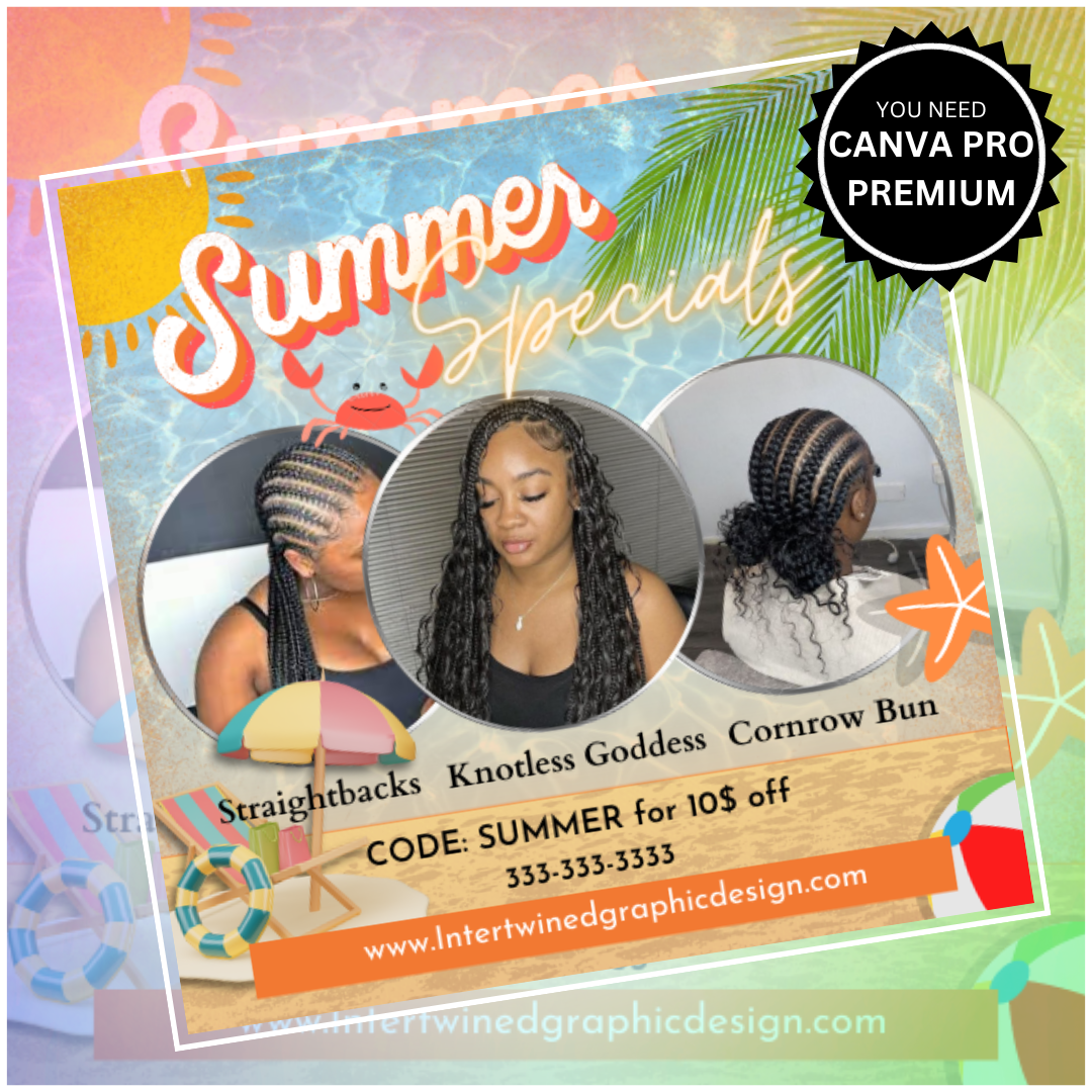 This ”Summer specials flyer” was made on Canva using Canva Pro elements. YOU DO need a Canva account to access this. You DO NOT need Canva Pro to purchase and use this design.