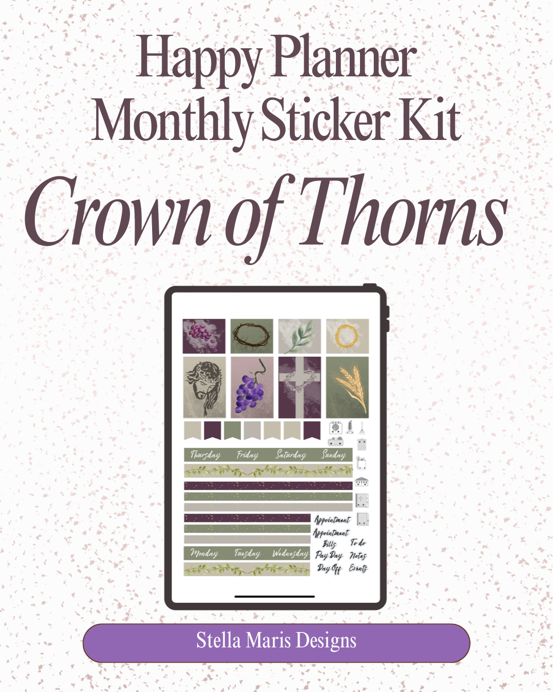 Crown of Thorns Lent – Printable Monthly Planner Sticker Kit – Catholic – Happy Planner Classic