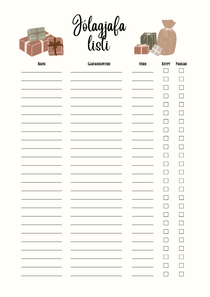 Þú færð formin á PDF sem þú getur prentað út heima og fyllt inní fyrir jólin.
