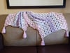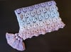 The sample is made using 2 cakes of Premier Yarns Momenti in color #2016-20 Hydrangea.