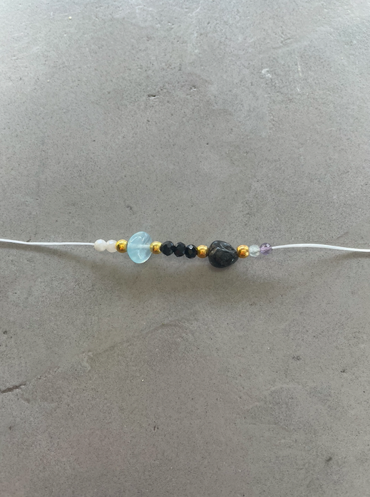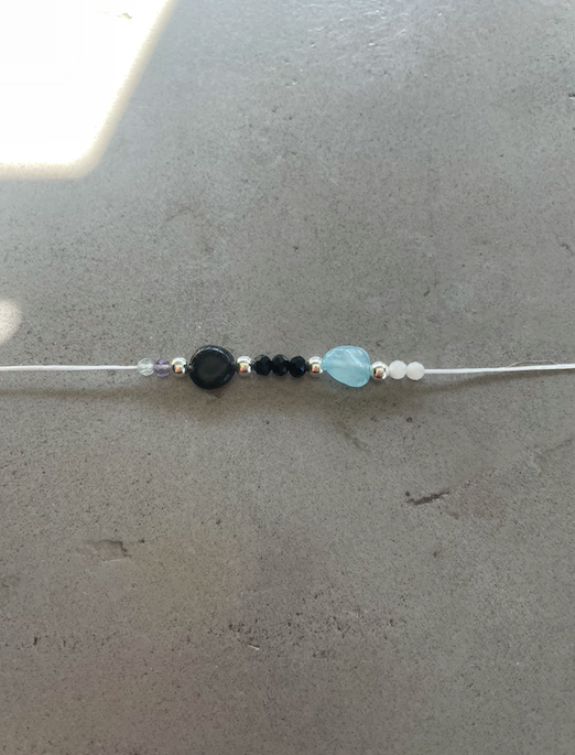 Zur Reinigung gehst du mit dem Armband oder Fußkettchen duschen oder hältst es unter fließendes Wasser. Alternativ kannst du es auch über Nacht auf eine Selenitplatte legen.