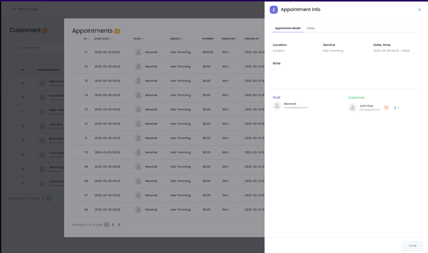 - Centered Modal Display: Upon clicking the button, a user-friendly, centered modal opens, presenting all appointments related to the selected customer in one clear view.