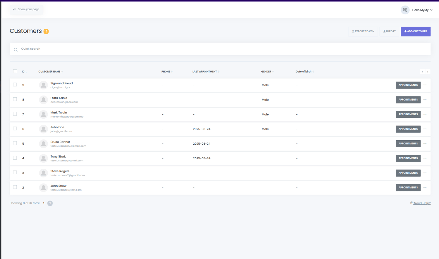 - Instant Access: A dedicated button is added to every customer row in the Customers module, allowing you to instantly view detailed appointment histories.