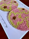 Bring a soft, vintage-inspired charm to your home with these hand-tufted floral coasters in warm blush and golden tones. Each coaster features a scattered floral design with subtle brown centers and winding stems, creating a cozy, heirloom feel that’s both delicate and grounded.