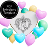 • 1 page of patterns in 3 different sizes that will fit in a 6 and 8-inch hoop size.