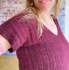 The Farmer's Market Top is a short sleeve summer top worked flat from the bottom up and designed for fingering weight cotton yarn. This v-neck cotton top is loaded with texture while still being light and full of drape. Create a gorgeous lightweight top that you'll be reaching for over and over.
