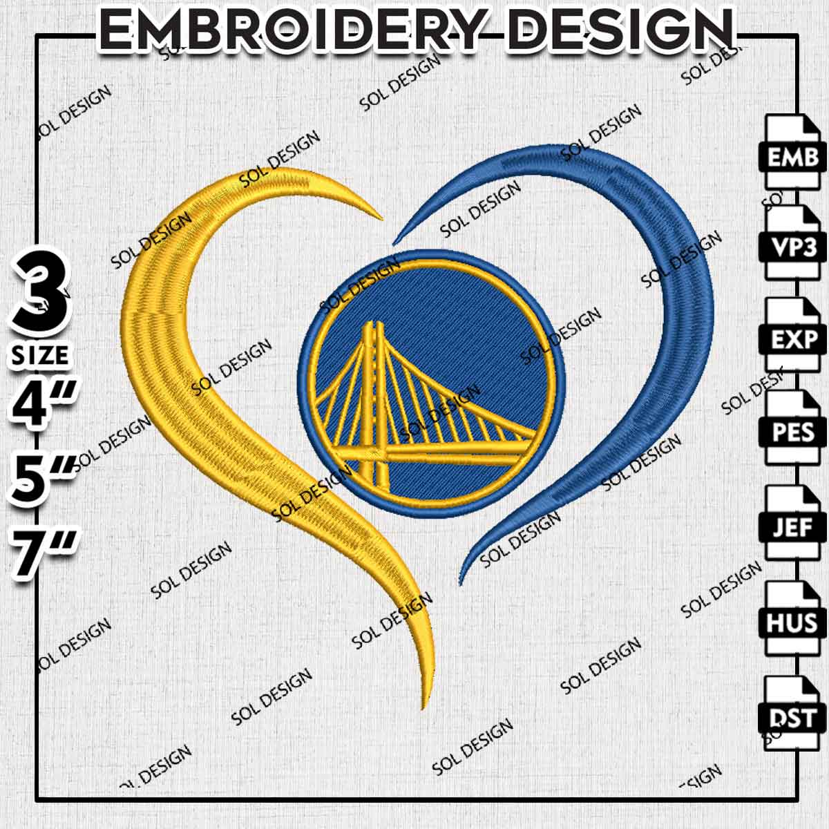 Golden State Warriors Team Heart Logo Embroidery Designs, Golden State Warriors Basketball Team Embroidery Files, NBA Warriors Team Logo Embroidery, NBA Basketball Team Machine Embroidery Design, 3 sizes, Digital Download