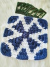 This is square #1, Summer Breeze measuring 9"! This pattern is part of Whimsical Days, issue #4 of our customizable magazine Variegated!