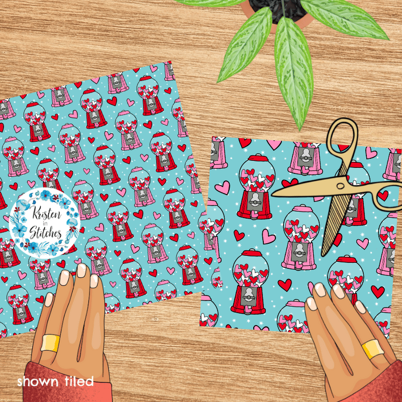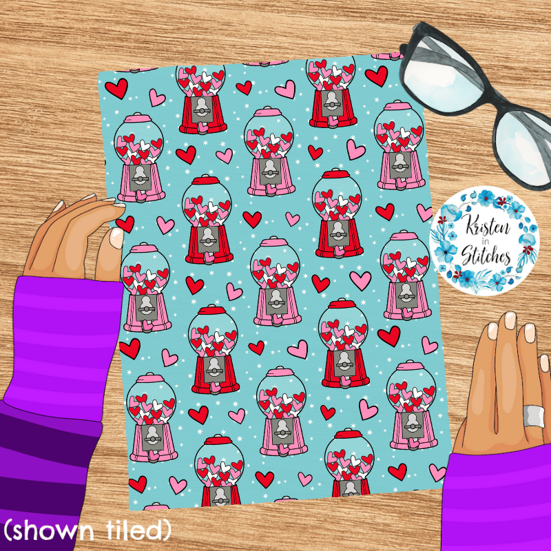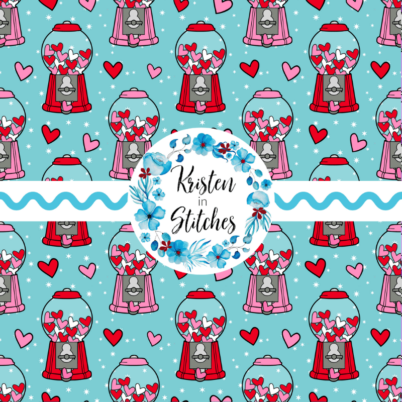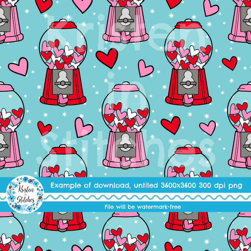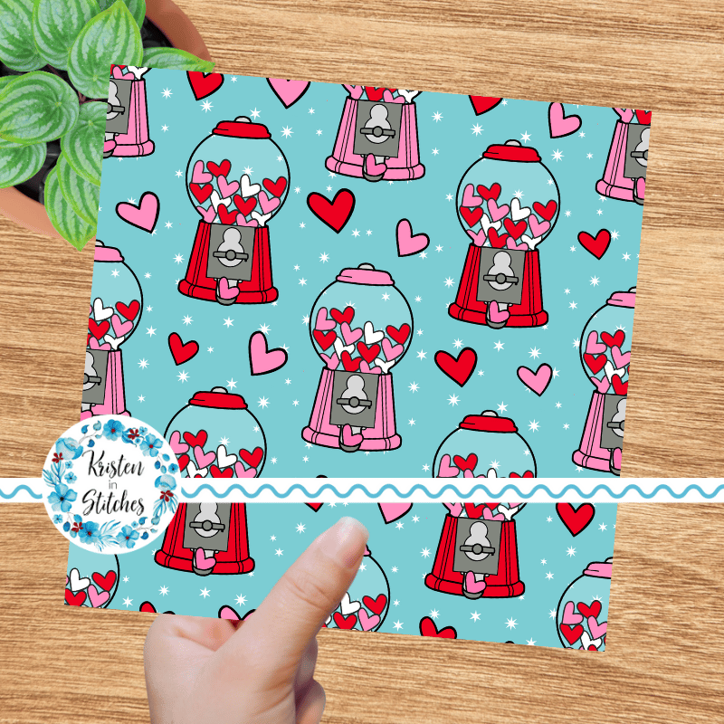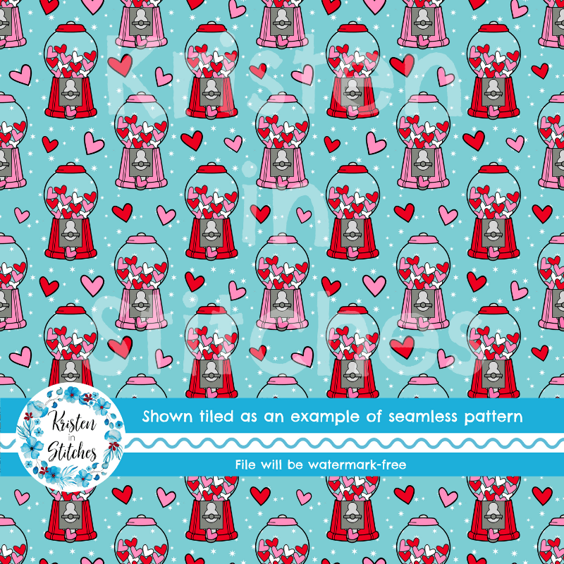 Valentine Hearts Bubblegum Machines Seamless Pattern