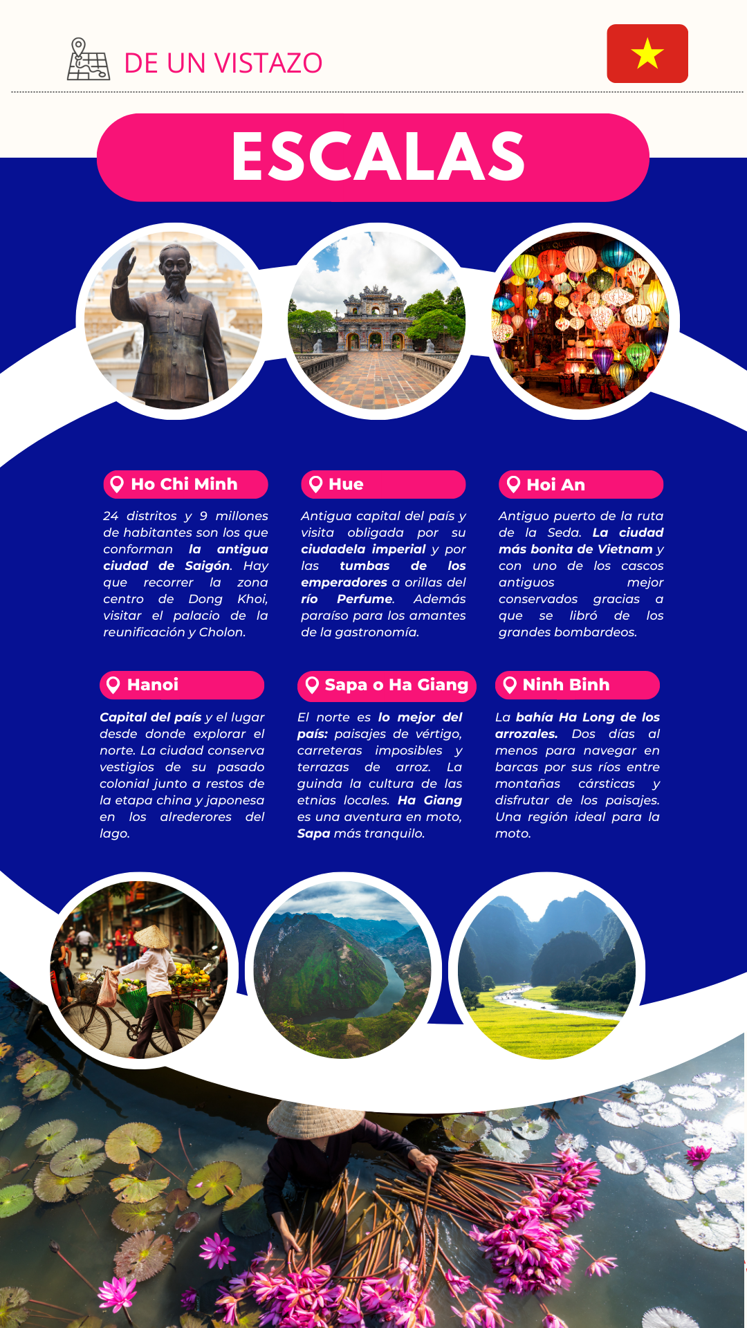 🌏 Vietnam, el corazón del Sudeste Asiático, te espera con paisajes impresionantes, ciudades vibrantes y una historia fascinante. Si sueñas con recorrer el país de norte a sur sin perderte lo esencial, esta Guía Exprés es tu mejor aliada para organizar el viaje de forma rápida, sencilla y efectiva. En formato PDF descargable (34 páginas), optimizada para llevar en tu móvil 📱 todo el contenido esencial para el viaje.