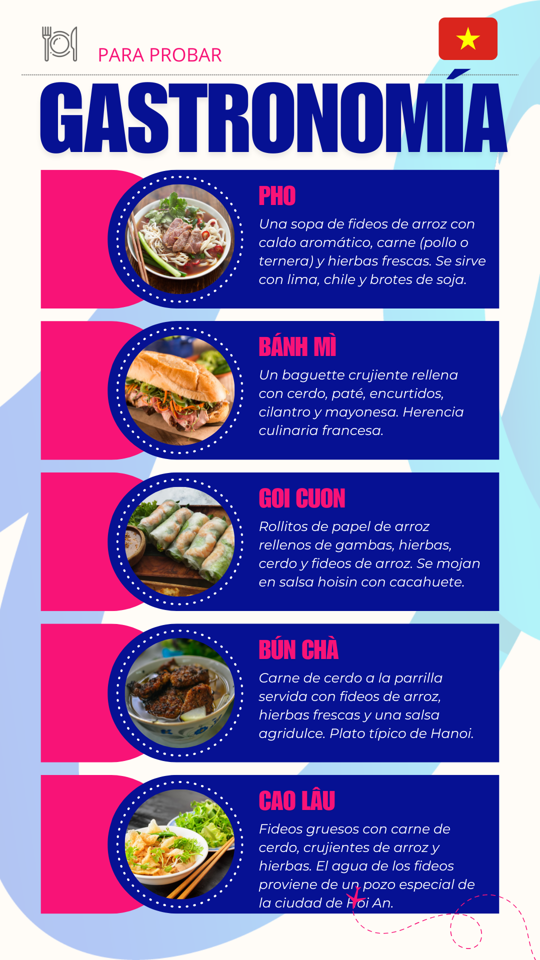 ✔️ Platos imprescindibles de la gastronomía vietnamita y dónde probarlos.