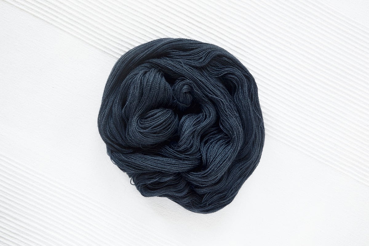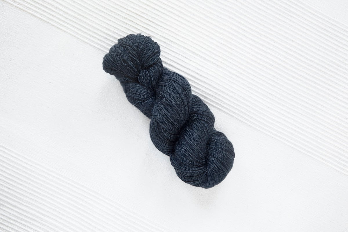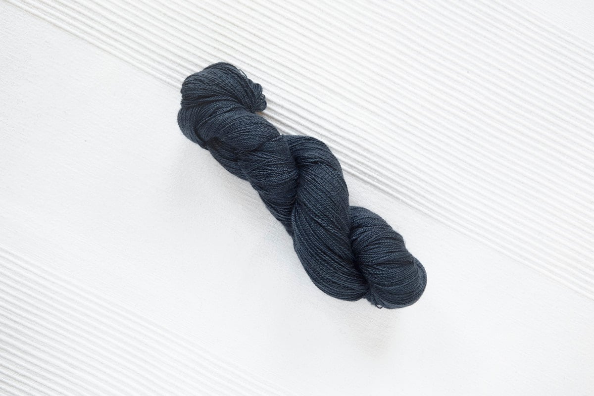 Whisper (Lace) in colorway: Dark Denim. Semi-solid. Dark denim blue with a hint of gray / green