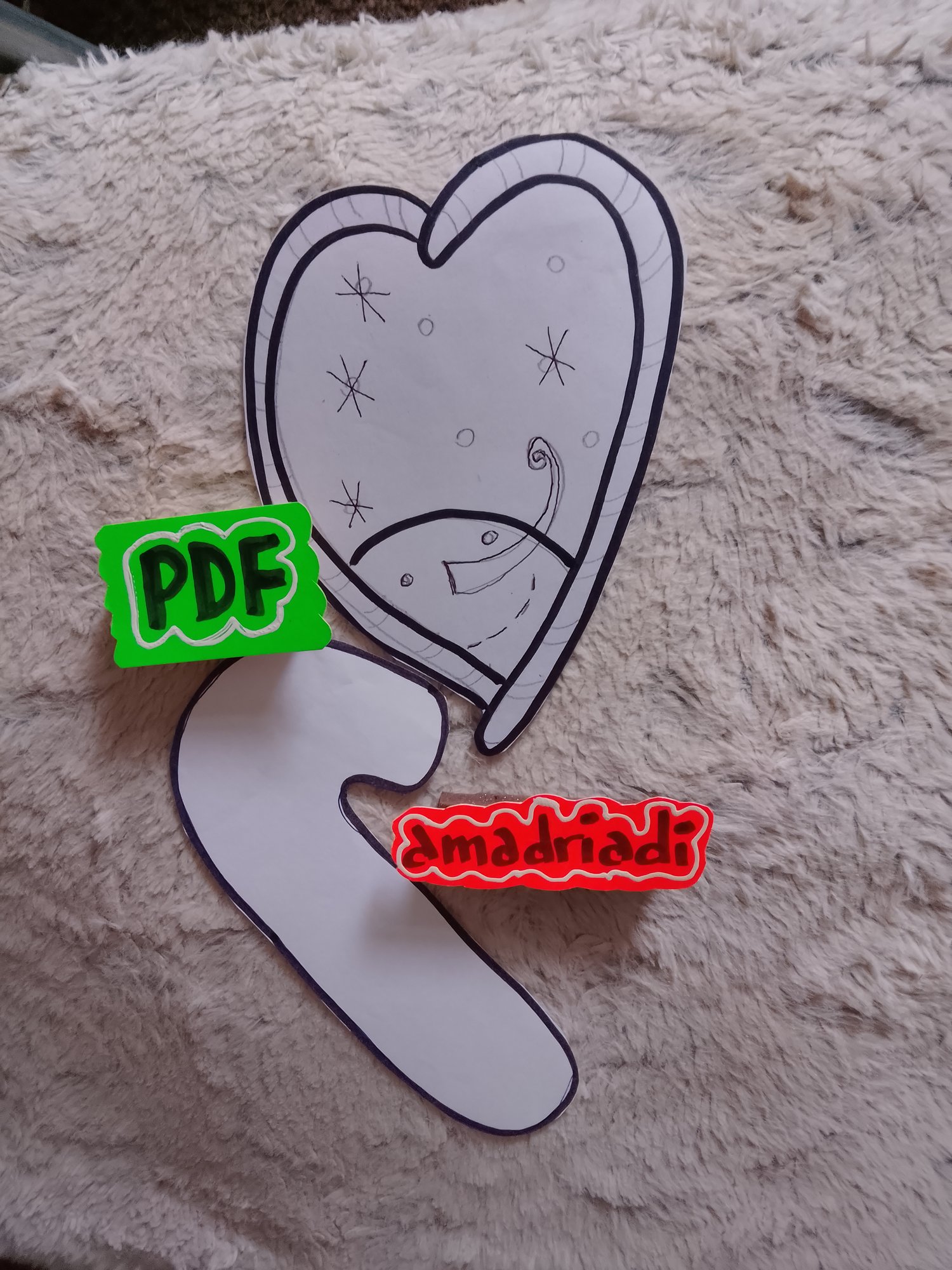 -Snowman Heart, Candy Cane/ Hombrecito de nieve corazón, bastón de caramelo.