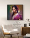 A work of art that will transform any room into a warm and inviting space. Exquisite oil painting of an Indian girl in a saree. Painted with thick impasto strokes, this piece features a beautiful blend of warm and cool tones that create an elegant and timeless effect.