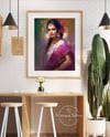 Very colorful yet not overpowering, figurative painting of Indian Girl in Saree, Elegant Painting.